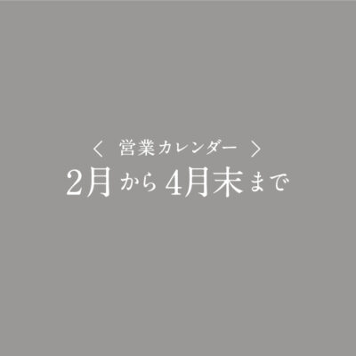 2月から4月の営業日についてのお知らせ